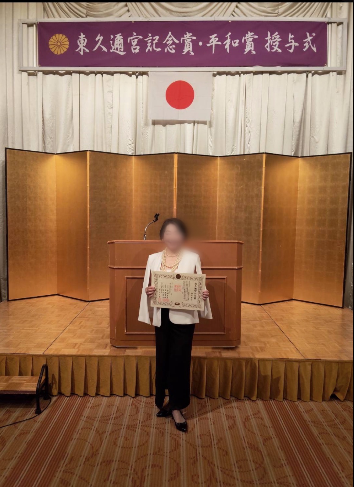 4月23日(金)、東久邇宮記念賞・平和賞授賞式が埼玉県のホテルブリランテ武蔵野にて執り行われました。当会特別相談役であり東久邇宮記念会会長の岩田様は、体調不良によりご欠席となりましたが、当会からは西井理事長、松丸顧問、砂山様が記念賞を授賞されました。また、東久邇宮記念会会長秘書の長谷様、大久保様が平和賞を授賞されました。当日は約100名の皆様がご参列され、終始華やかで厳かな雰囲気の中、式典が執り行われました。